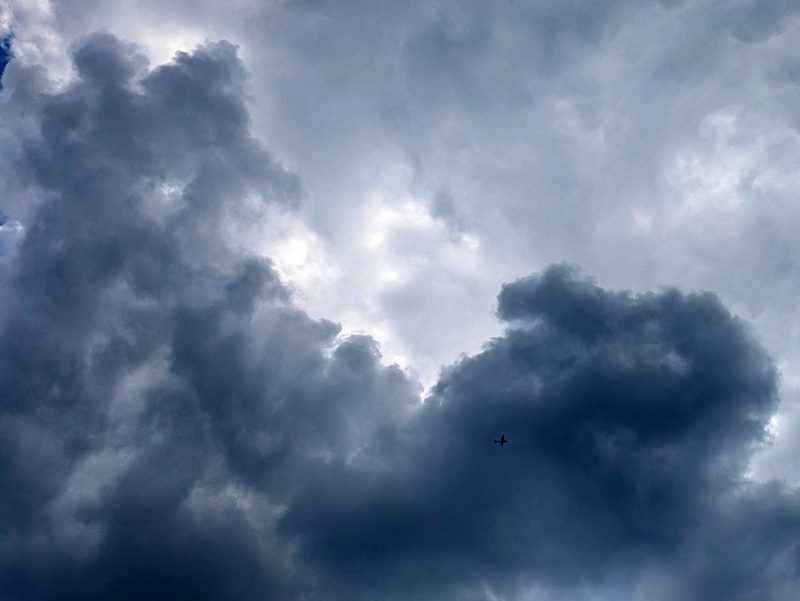 Kleines Flugzeug vor großer Wolke
