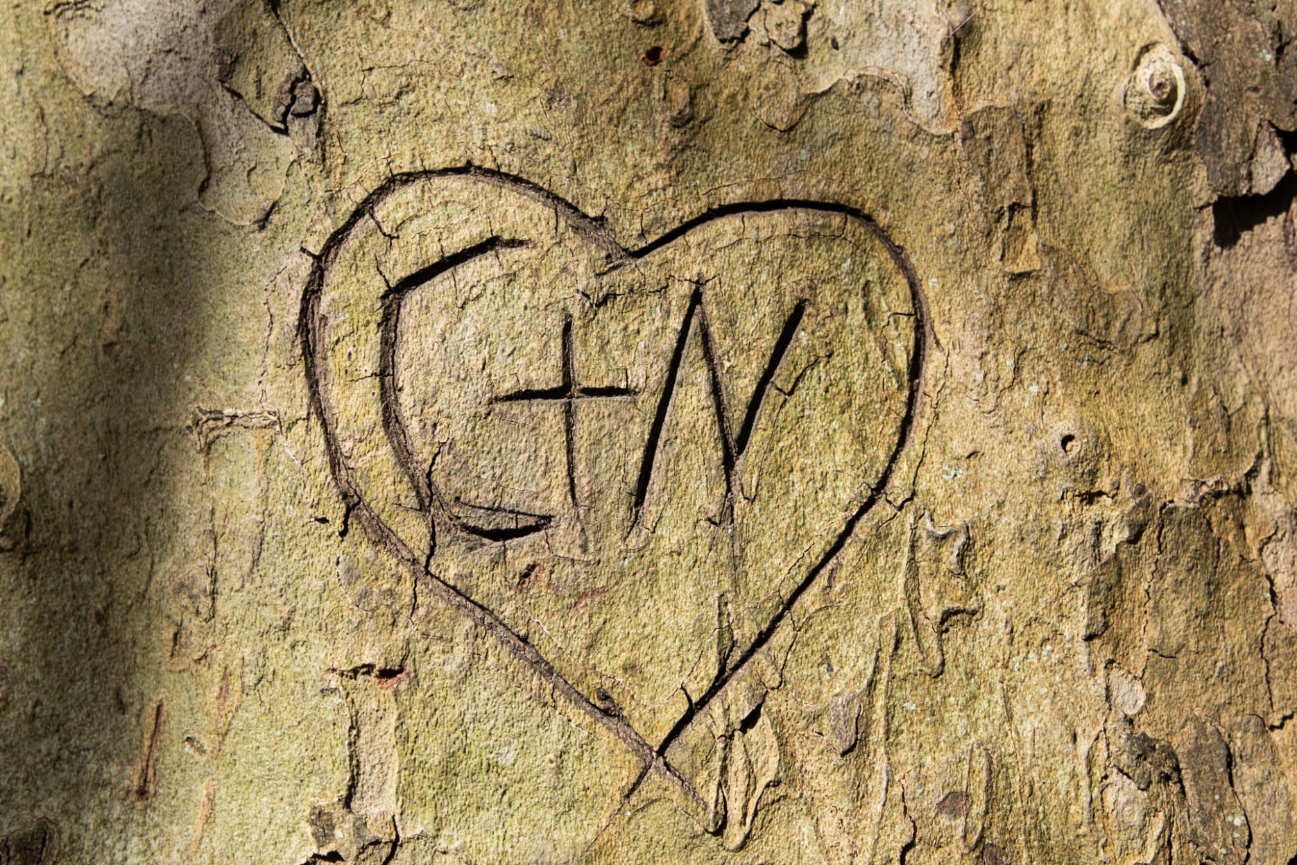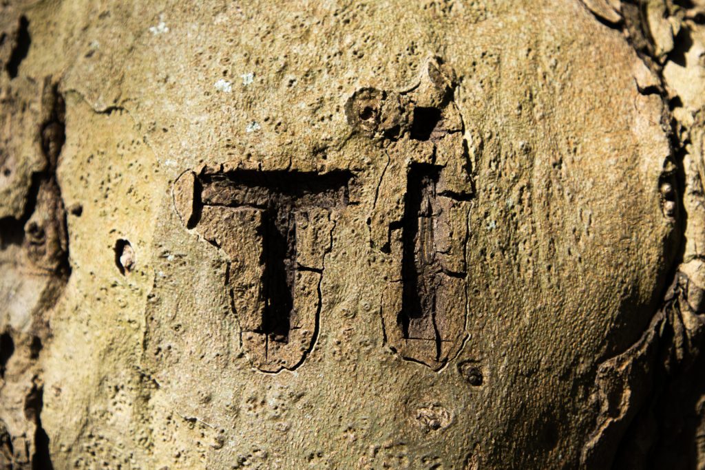 Eingeritzt in die Rinde des Baumes – Wer mag sich wohl hinter den Initialen im Baum verbergen?