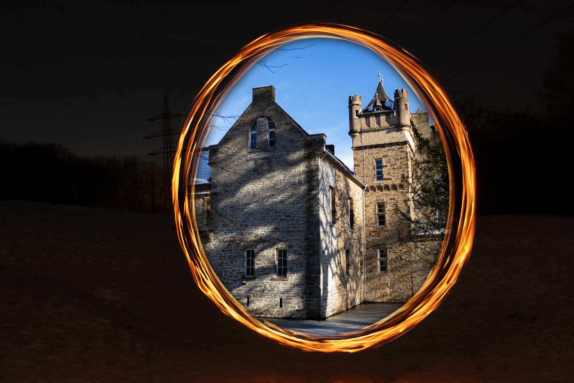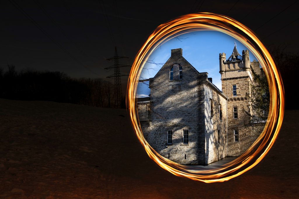 Ein rotierendes Feuerrad in der Nacht. Doch was liegt dahinter?